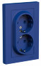 Розетка двойная Systeme Electric (ранее Schneider Electric) серии AtlasDesign (в сборе, цвет аквамарин) с заземлением, без шторок подходит для сетей 250 В, на ток 16 А.