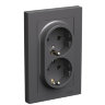 Розетка двойная Systeme Electric (ранее Schneider Electric) серии AtlasDesign (в сборе, цвет базальт) с заземлением и шторками, со сдвижными крышками подходит для сетей 250 В, на ток 16 А. Заземляющий контакт обеспечивает дополнительную защиту от удара электрическим током. Специальная монтажная коробка входит в комплект. Это самая плоская розетка в своем сегменте – она практически сливается со стеной.