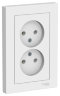 Розетка двойная Systeme Electric (ранее Schneider Electric) серии AtlasDesign (в сборе, цвет ЛОТОС) с заземлением и шторками подходит для сетей 250 В, на ток 16 А.