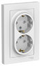 Розетка двойная Systeme Electric (ранее Schneider Electric) серии AtlasDesign (в сборе, цвет ЛОТОС) с заземлением, без шторок подходит для сетей 250 В, на ток 16 А.
