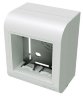 Коробка монтажная под 2 модуля электроизделий, тип PDB. Назначение: организация рабочего места. Условия монтажа электроустановочных изделий: защелкиванием (ЭУИ "Brava" − изнутри). Характеристики: материал – АБС-пластик; для ввода мини-каналов − преперфорация внутри коробки на всех 4-х стенках; для ввода гофротрубы − перфорация на дне коробки диаметром 16 и 25 мм; для монтажа к стене − 4 отверстия на дне коробки для саморезов диаметром до 5 мм. Комплектация: основание; лицевая часть (рамка с защелками для монтажа ЭУИ). Цвет белый