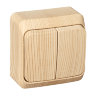 Выключатель Systeme Electric (ранее Schneider Electric) ЭТЮД (сосна, открытой установки) двухклавишный предназначен для применения в сетях до 250В, на ток до 10А. Наличие подсветки делает его легко находимым при отсутствии освещения. Две клавиши позволяют управлять двумя источниками света с одной точки. Изделия цвета Сосна обладают уникальным рисунком, напоминающим древесный сруб. Сделано в России.