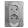 Розетка двойная Systeme Electric (ранее Schneider Electric) серии Glossa (в сборе, цвет алюминий) с заземлением, без шторок подходит для сетей 250 В, на ток 16 А.