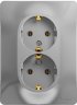 Розетка двойная Systeme Electric (ранее Schneider Electric) серии Glossa (в сборе, цвет алюминий) с заземлением и шторками подходит для сетей 250 В, на ток 16 А.