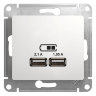 Розетка Systeme Electric (ранее Schneider Electric) серии Glossa (цвет белый) двойная USB с разъемами типа A+C высокоскоростная.