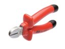 Для работы под напряжением до 1000 В;Материал рукояток: двухслойная диэлектрическая пластизоль. Внутренняя изоляция желтого цвета, внешний слой изоляции красного цвета;Режущие кромки дополнительно закалены токами высокой частоты. HRC 62;Резка мягкой проволоки до 4 мм и твердой проволоки до 2.5 мм;Удлиненный тип головки;Материал рабочей части: хром-ванадиевая сталь;Обработка поверхности: матовое никелирование;