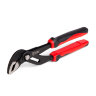 Клещи переставные с кнопочной фиксацией предназначены для захвата плоских, круглых и многогранных деталей.Двухцветные многокомпонентные рукоятки с упорами от соскальзывания.Раскрыв губок: 70 мм.Зубцы повышенной твердости: HRC 55...62.Точная и быстрая многопозиционная регулировка механизма захвата для оптимальной установки по размеру детали.Самофиксация на трубах и гайках.Широкий диапазон раскрытия клещей.Регулировка раскрытия инструмента пружинной кнопкой.Конструкция шарнира исключает случайную перестановку.Минимальное усилие при работе благодаря специальной форме губок и рукояток.Материал: кованая хром-ванадиевая сталь.Обработка поверхности: воронение.Вес: 630 г.Длина: 300 мм.