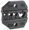 Опрессовка изолированных разъемов с красной, синей и желтой манжетами;Типы разъемов: РППИ-М, РПИ-П, РПИ-М, РШИ-П, РШИ-М, РПИ-О;Сечения проводов: 0.5/0.75/1.0/1.5/2.5/4/6 мм2;Трехпозиционная матрица;Профиль обжима: овальный, двухконтурный;Для пресс-клещей: CTB, CTA, CTK;