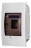 * **Дверь:** прозрачная, чёрного цвета. Обеспечивает хороший обзор содержимого щита и придаёт ему эстетичный вид.